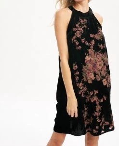 Mystree Burnout Velvet Mix Halter Dress in Black – women