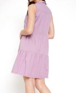 Mystree Mollie Washed Cotton Tiered Shirt Dress in Lavender – women