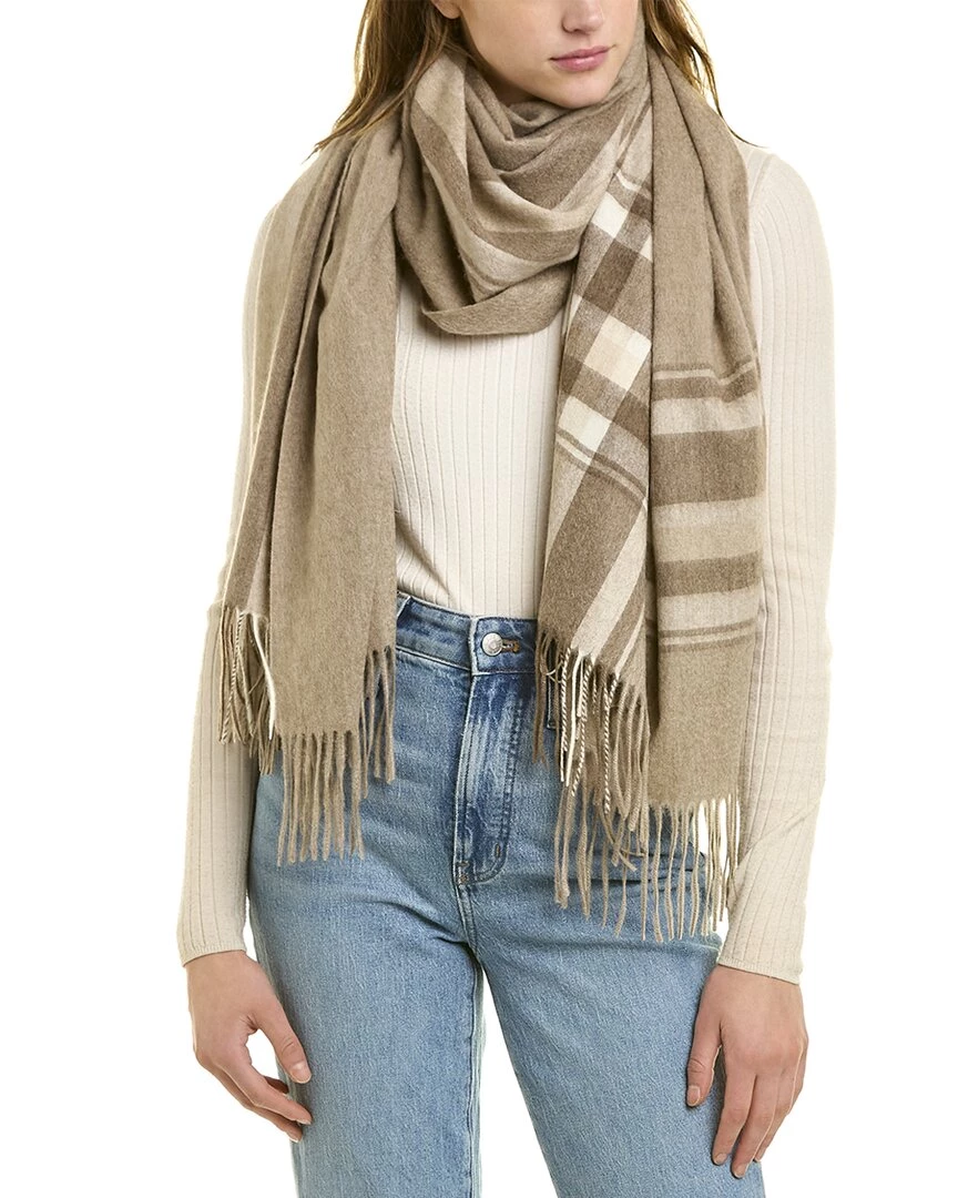 - Plaid Cashmere Wrap In Heather Taupe Combo With 4In Fringe At Ends