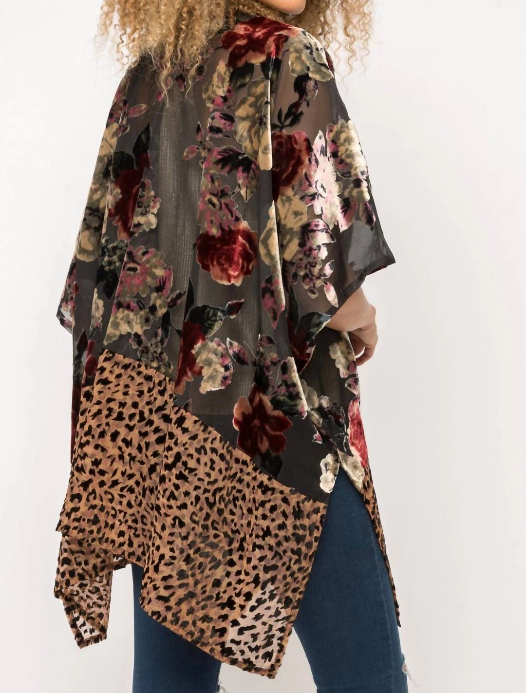 Mystree Leopard And Rose Burnout Velvet Kimono in Multi – women