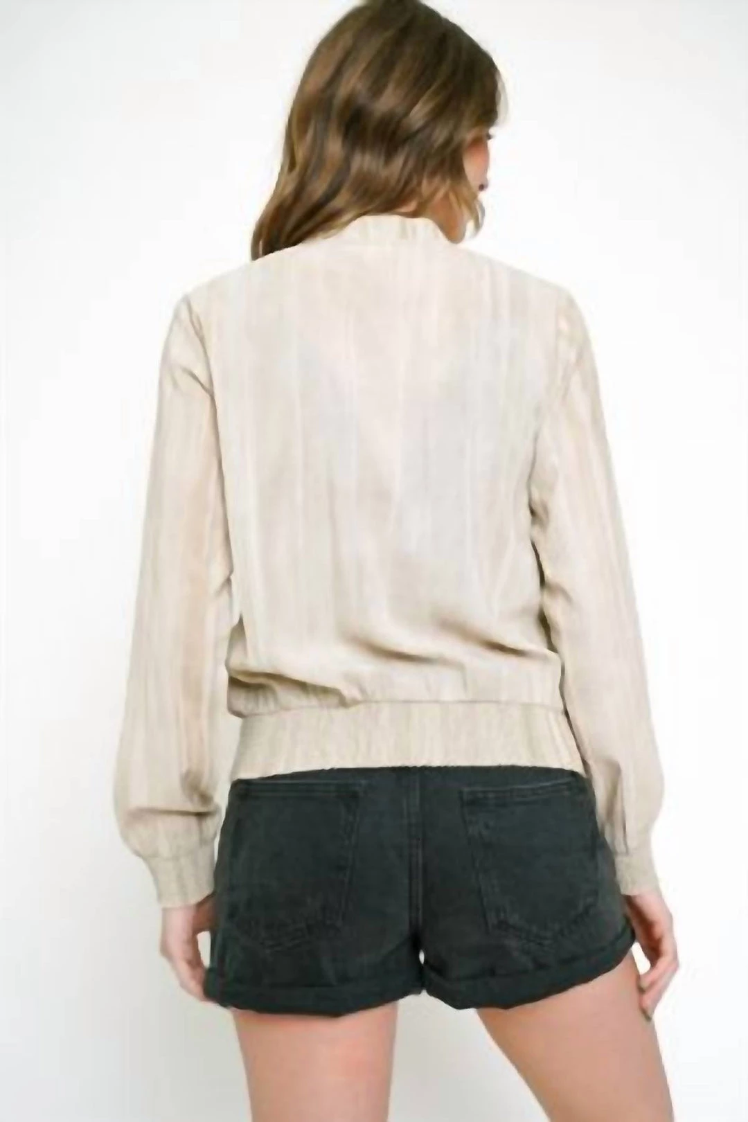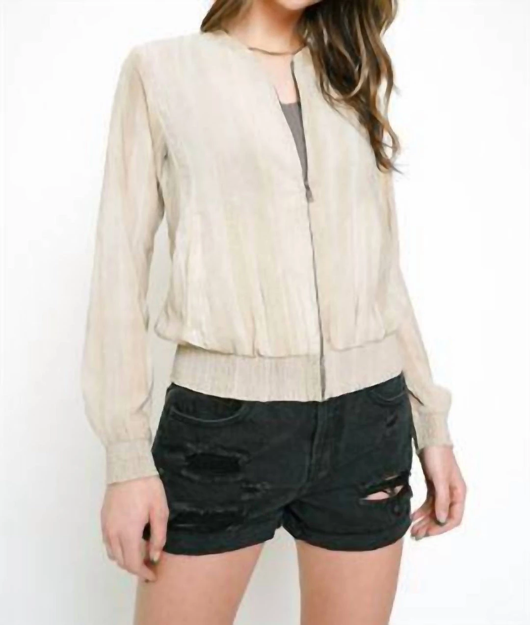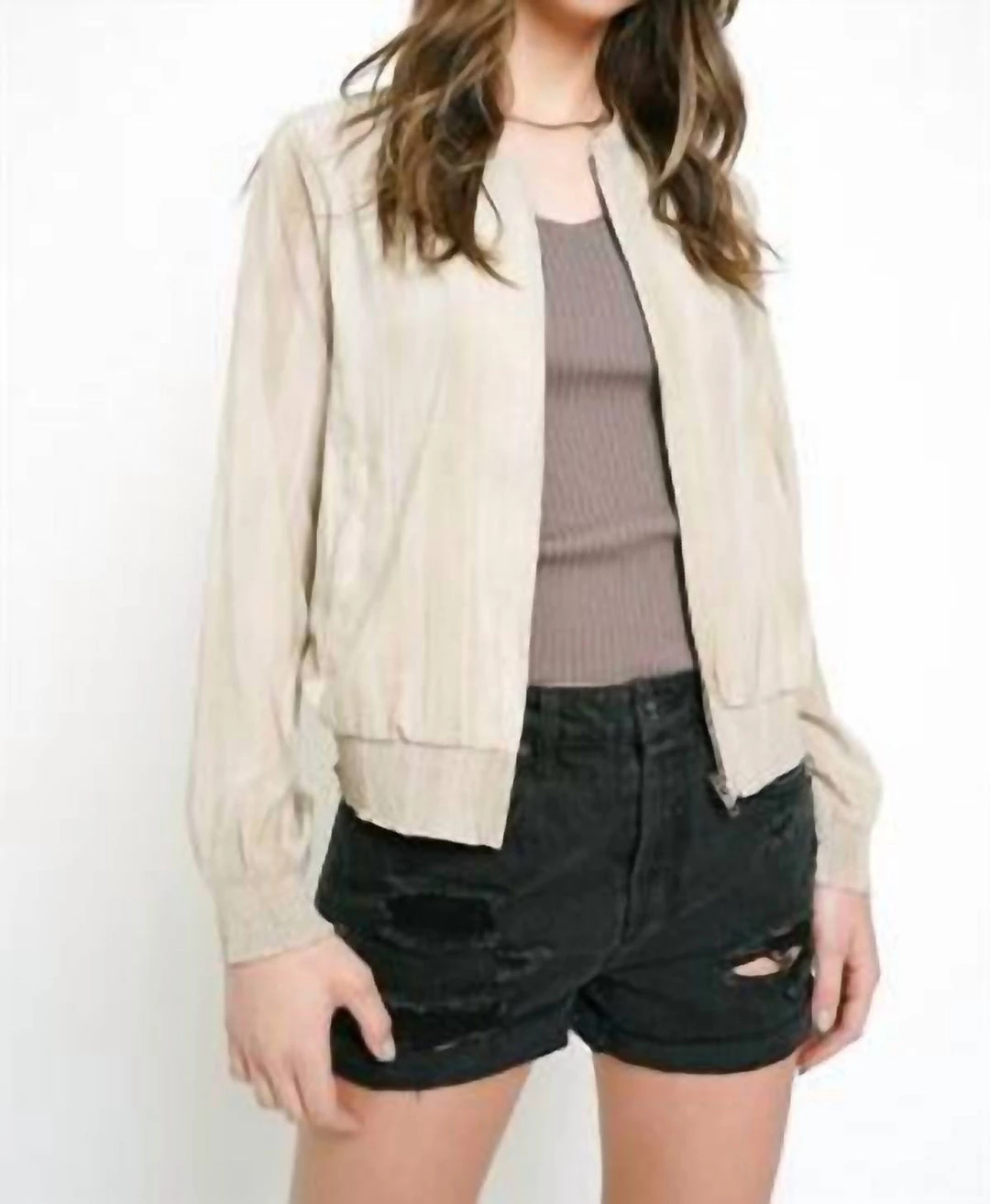 Mystree Washed Crinkle Bomber Jacket in Almond – women