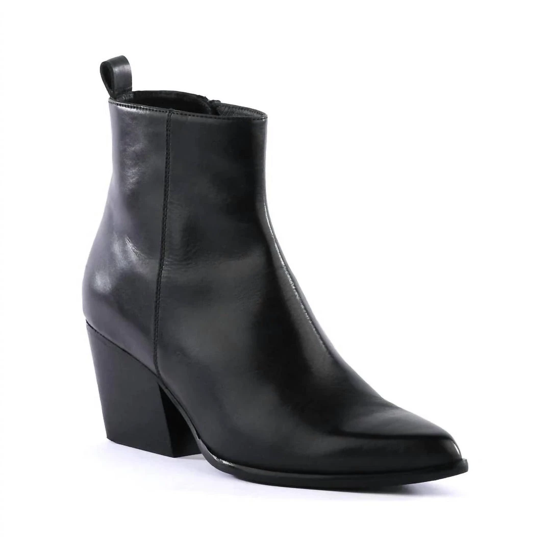 The Aboard Bootie features a narrow stacked leather underslung heel, pointed toe, back pull tab and tight to the ankle fit.ΓΒ