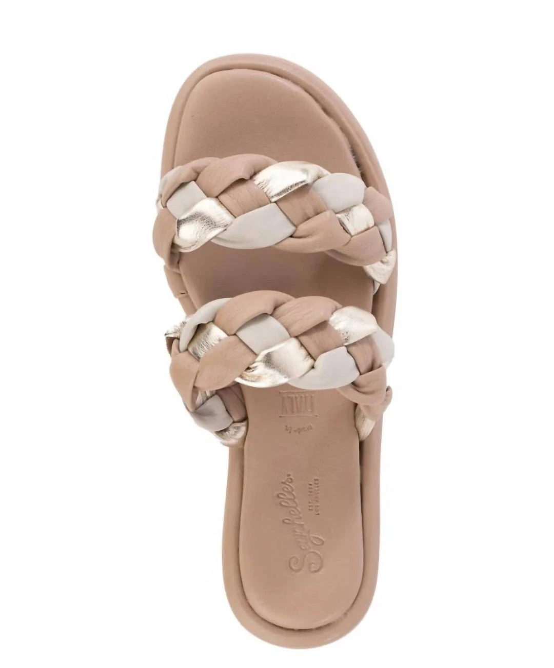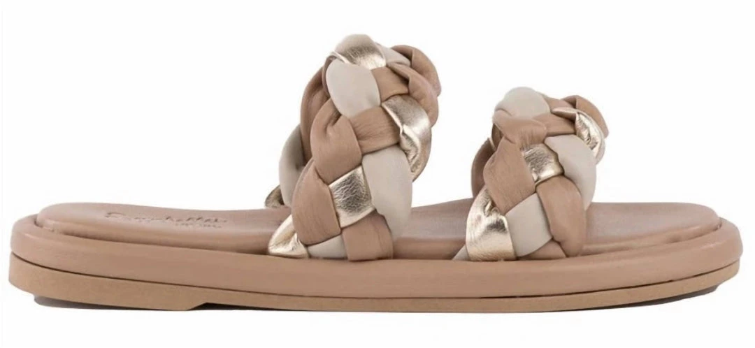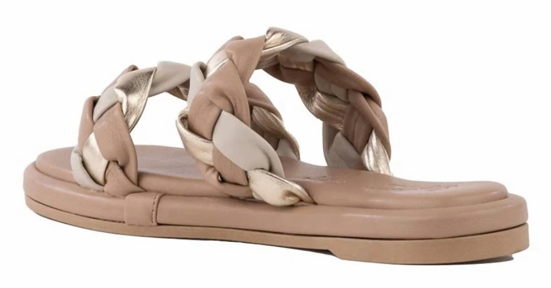Two band woven sandals with modern square toe, Golden Coast is everything you want in a flat sandal. With puffy braided detailing and cushioned insoles, they’re perfect for dressy occasions or just knocking around town.